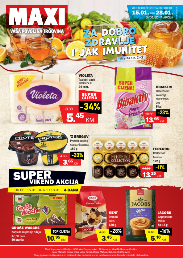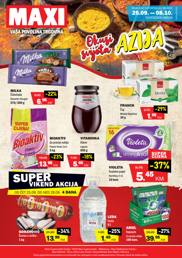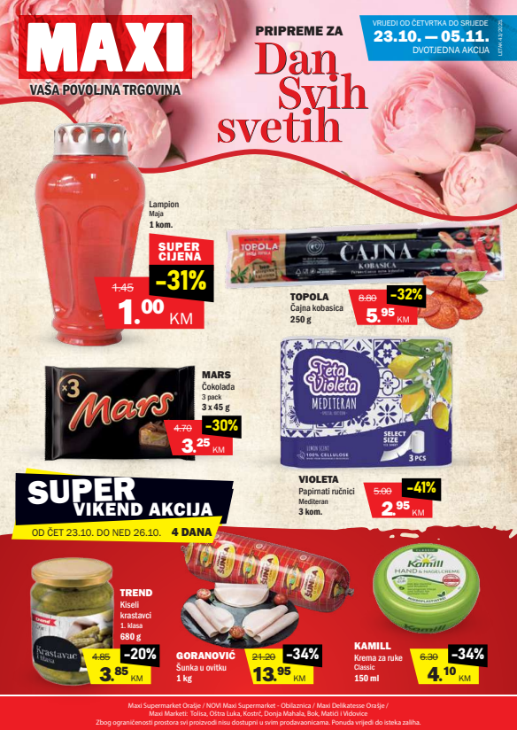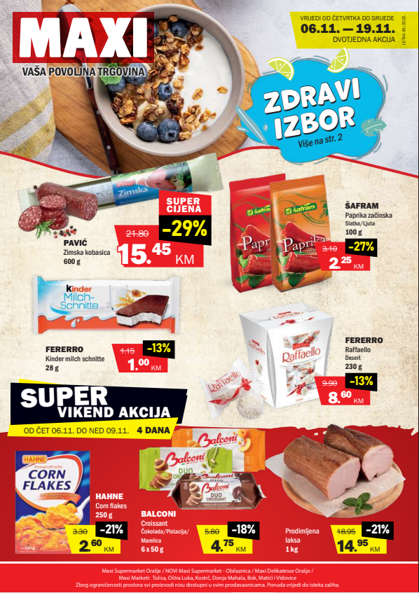 Provjerite preko 200 odabranih artikala po sniženim akcijskim cijenama koje vam donose vaši MAXI SUPERMARKETI I MARKETI.